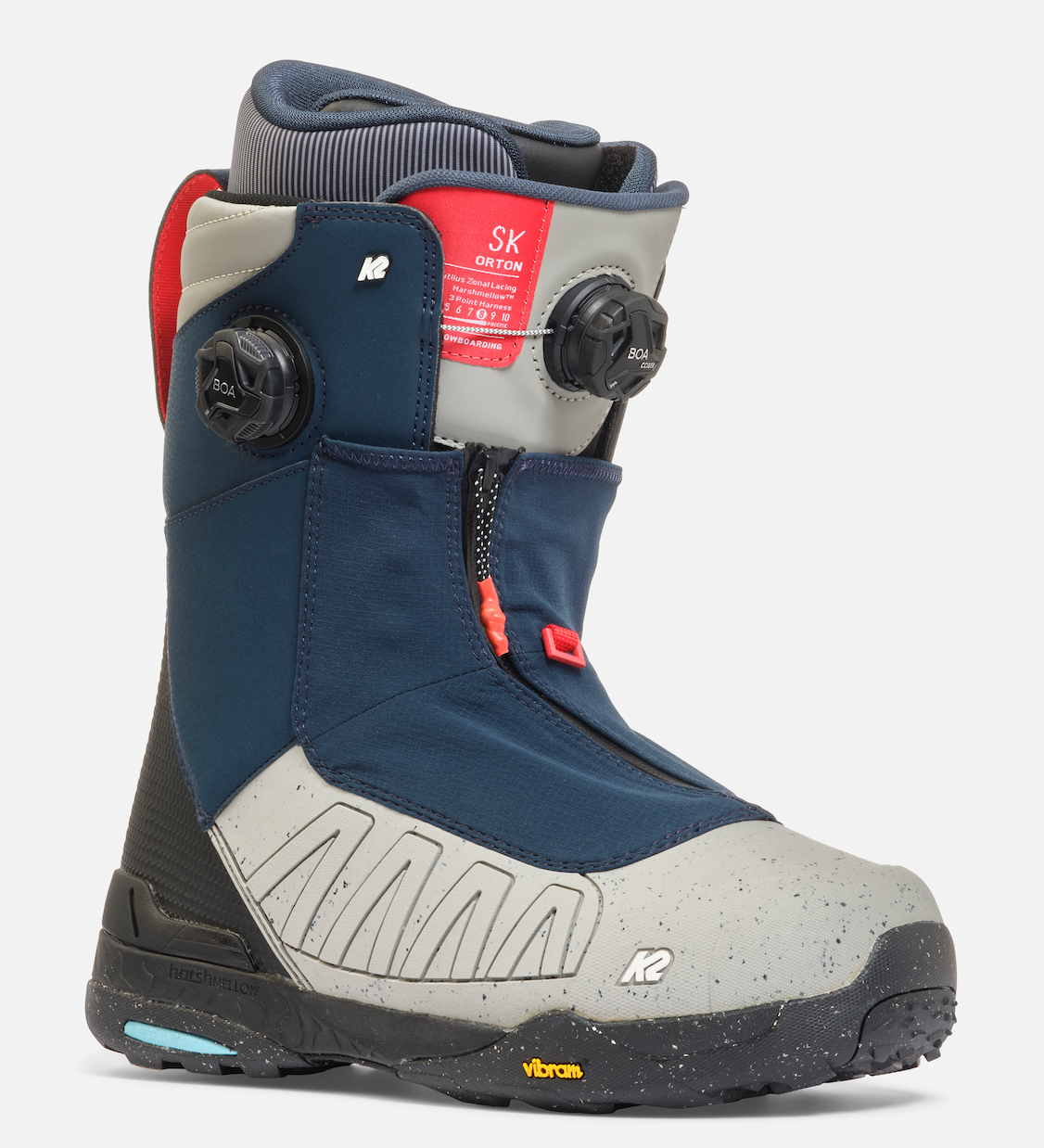 The K2 Orton features an Intuition® Pro Foam 3D Liner with SpaceHeater™ which is designed for comfort and warmth, from start to finish. It features reflective heat blanket panels that work to trap heat in and keep cold out. Heat moldable Intuition® foam, internal J-Bars, and 3D molded dual-density EVA insoles keep your foot comfortable and warm all day long. The Intuition® Pro Foam 3D Liner with SpaceHeater™ is designed for comfort and warmth, from start to finish. It features reflective heat blanket panels that work to trap heat in and keep cold out. Heat moldable Intuition® foam, internal J-Bars, and 3D molded dual-density EVA insoles to keep your foot comfortable and warm all day long. 3-Point Harness Liner Lacing System is a straightforward solution that doesn’t skimp on support. This system aims to optimize heel hold, while providing ankle support and stability to help reduce fatigue. H4/M3 Focus BOA® Fit System allows for the upper and lower zones of the boot to be tightened independently