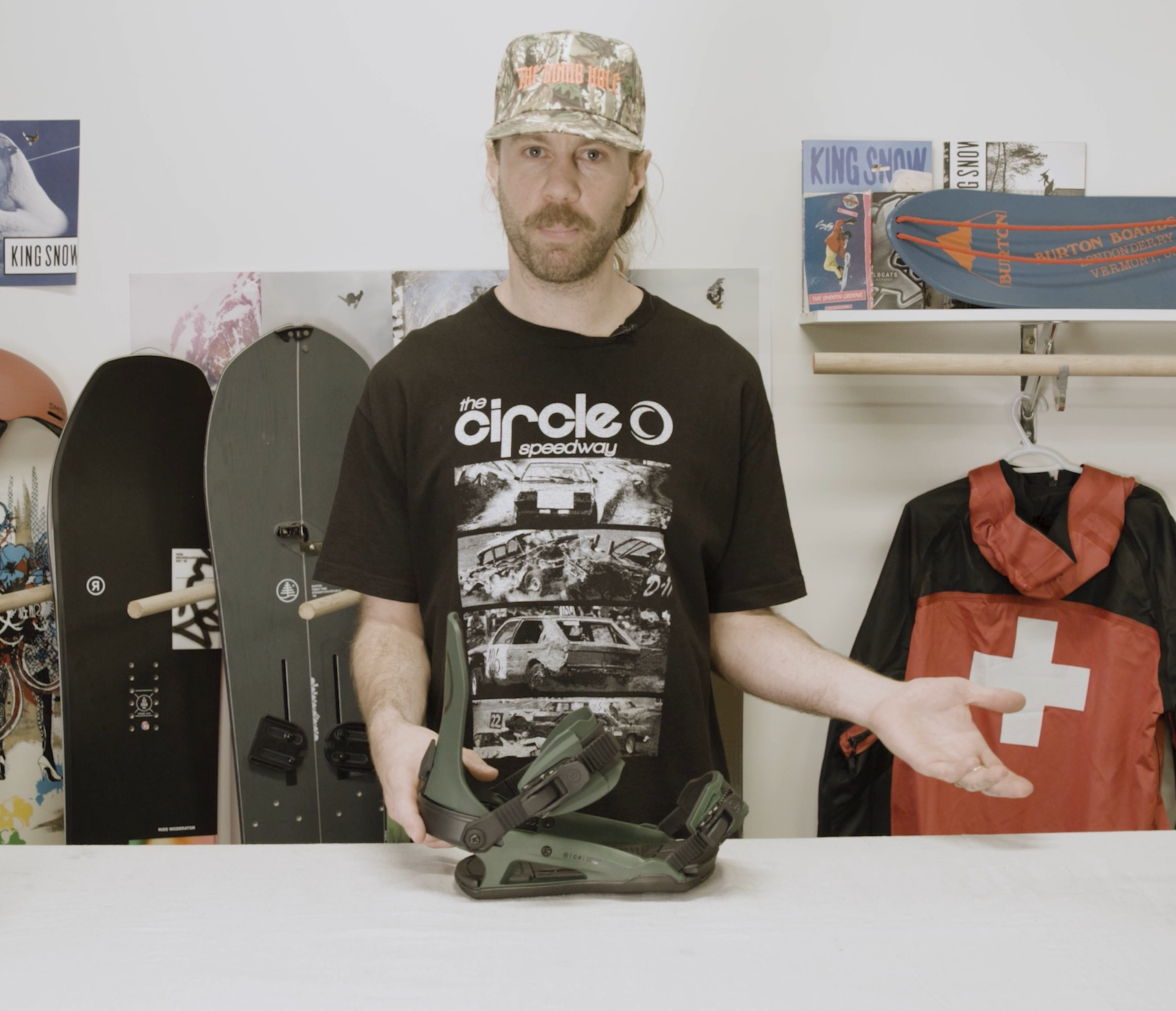 "I really like how easy it is to adjust. It's all toolless, so it made setting it up easy. It was easy to get used to the straps, they mold to the boots well, and it was super comfortable. Honestly, if you want one binding to do everything—this is it. The highback is comfy, but also, the response I got out of it felt really good. Carving around it was comfortable and performed amazingly. It's a mid-flex, so in the park, I was able to tweak grabs and it felt comfortable on rails. The binding's not too stiff. It will handle all conditions, whatever you want to do, you'll be comfortable with this binding. I think this binding is just that perfect happy medium do-everything binding. They're really comfy." —Jon
