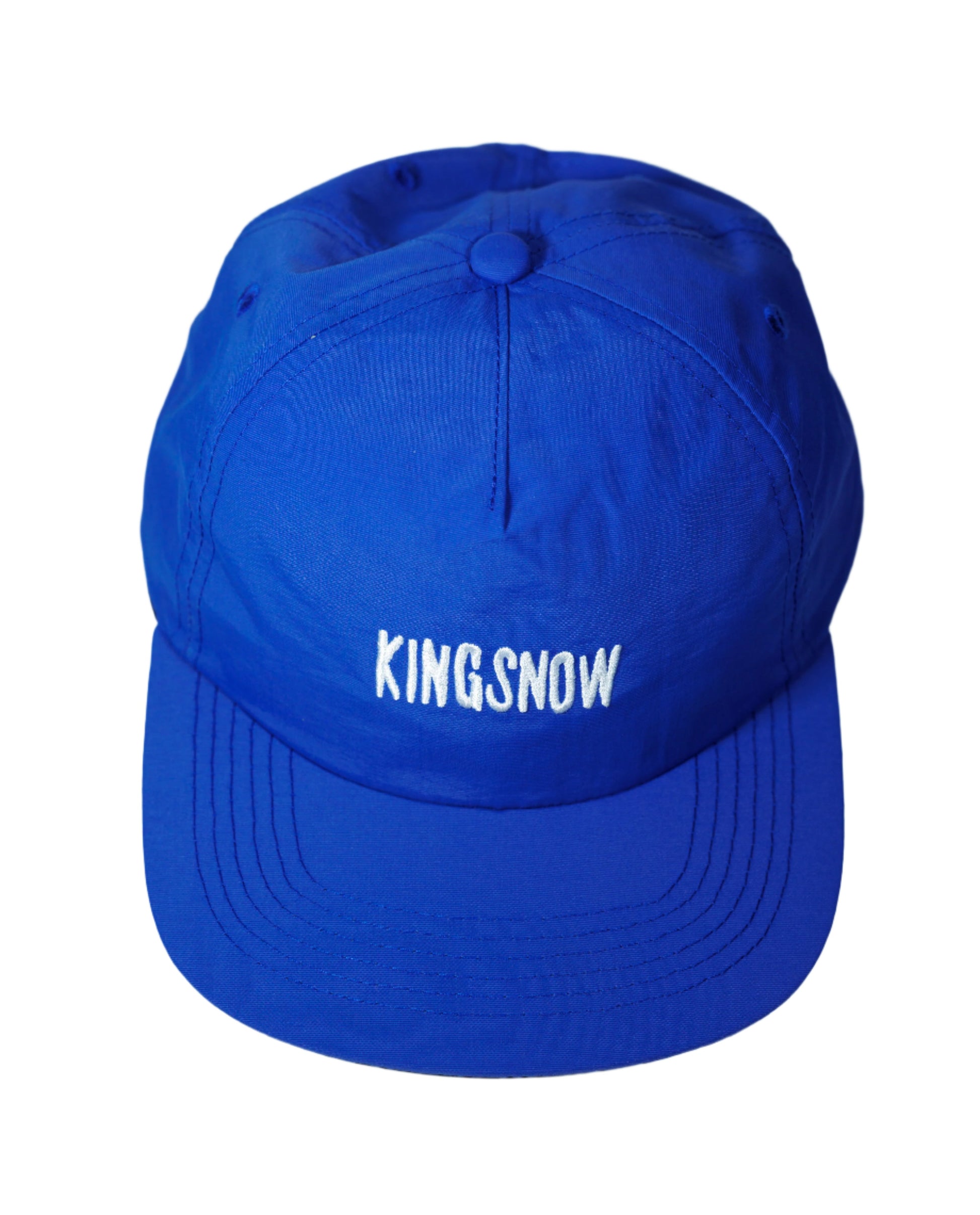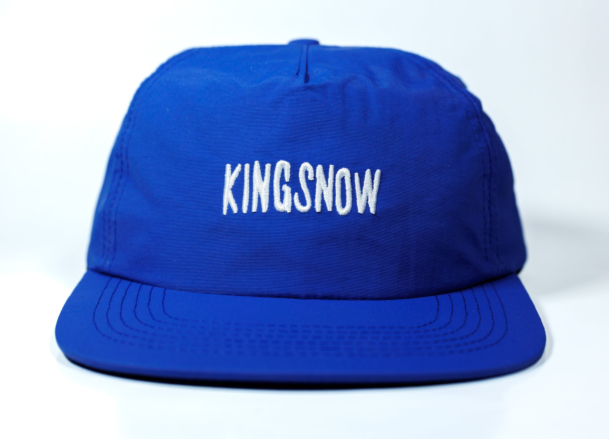 Unstructured 5-panel fit with embroidered King Snow sketch wordmark and strapback closure.